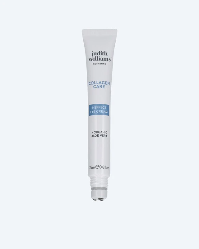Durch die einzigartige Kombination aus 100 % pflanzenbasierten Kollagenfragmenten und bio-zertifizierter Aloe Vera entfaltet die Collagen Care 5-Effect Eye Cream eine kraftvolle 5-fach-Wirkung: Falten und feinen Linien kann sichtbar entgegengewirkt werden, Schwellungen können sichtbar reduziert und Augenringe optisch gemindert werden. Des Weiteren wird die sensible Augenpartie optimal mit Feuchtigkeit versorgt und beruhigt. Der angenehme Roll-on-Applikator hat beim Auftragen einen kühlenden Effekt.