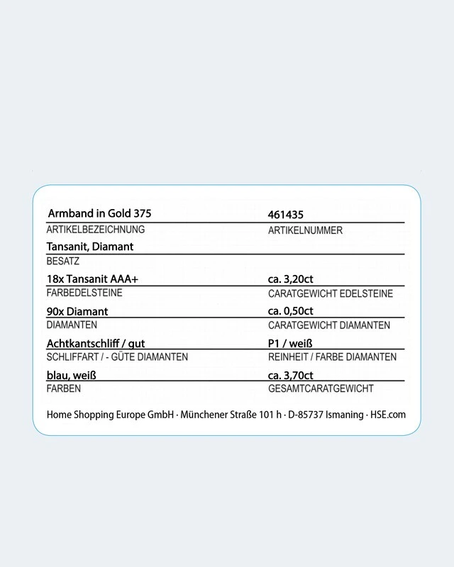 Beim magischen Leuchten von perfekt geschliffenen Tansaniten in AAA+-Farbqualität wird jede Schmuck-Enthusiastin schwach. Besonders, wenn die noblen Edelsteine in Krappenfassungen von luxuriösen Diamanten der Reinheit P1 begleitet werden – wie bei diesem Precious Tales Armband mit extra Glamour-Faktor. Bewundern Sie dieses karatstarke Edelsteinarmband aus warmem 375er Gelb- oder warmem 375er Weißgold mit Hochglanzfinish schon bald am eigenen Handgelenk.