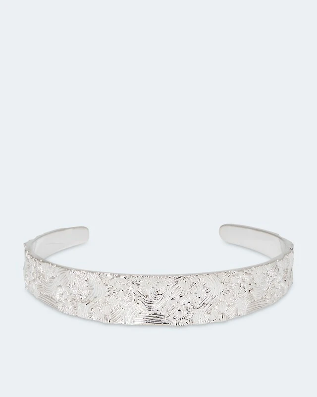 Der Armreif ist offen gestaltet und hat gerade Ränder. Er wird ganz unkompliziert über das Handgelenk gestreift.