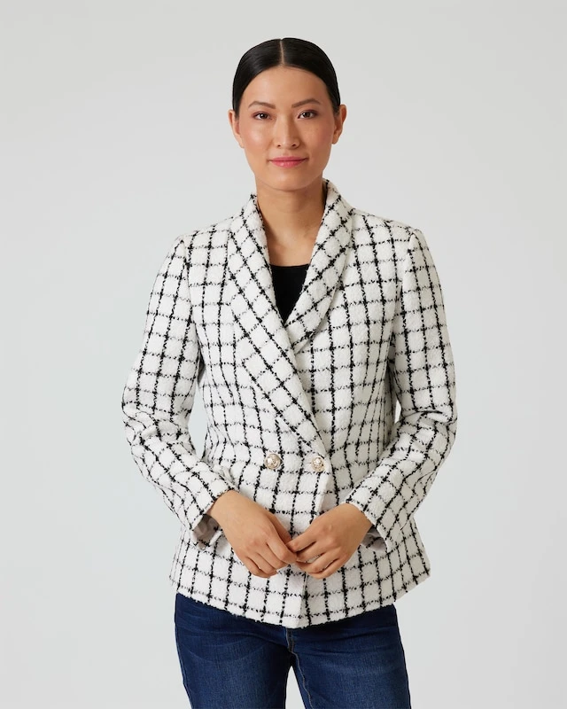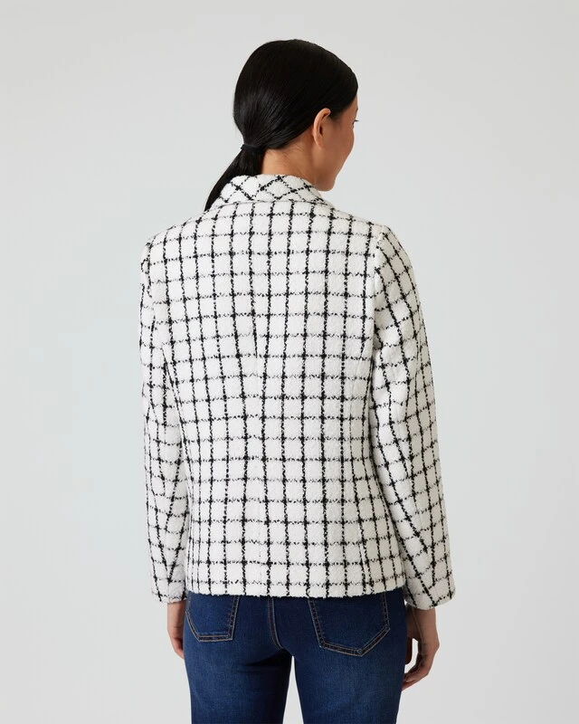 Sie schätzen die opulenten Looks von Alfredo Pauly? Dann werden Sie sich in diesen wunderschönen Blazer sofort verlieben. Das Fashion-Piece begeistert durch seine edle Bouclé-Optik im charmanten Karo-Design.