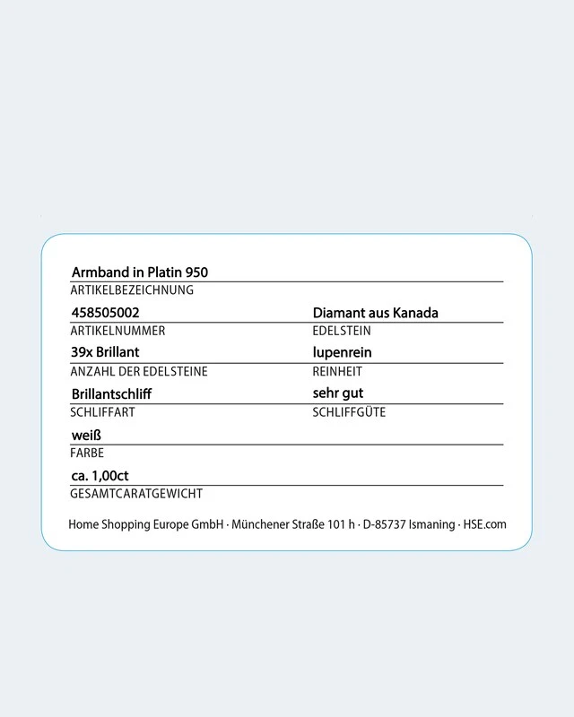 Bei diesem Armband umschmeichelt kühl-elegantes Platin je nach Länge 36 oder 39 weiße Kanada-Brillanten. Luxuriöser geht es kaum! Ein Schmuckstück, das mit einem atemberaubenden Glitzern Ihre Ausstrahlung unterstreicht. Die runden Brillanten sind lupenrein und von sehr guter Schliffgüte. Verschlossen wird das elegante Accessoire aus gebürstetem 950er Platin mit einem Kastenschloss mit Sicherheitsacht.