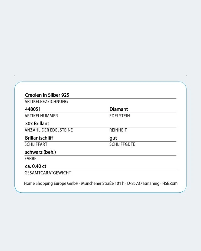 Diese Creolen aus 925er Sterlingsilber sind nicht nur ein atemberaubender Blickfang, sondern auch ein Symbol für Schönheit und Stil: Setzen Sie raffinierte Blickfangeffekte mit diesem Ohrschmuck. Ob zur stylischen Kurzhaarfrisur oder einem Hochsteck-Styling – Ihr Look gewinnt im Handumdrehen an Klasse. Insgesamt 30 Brillanten sind hier verarbeitet. Die schwarze Farbe sorgt für ein hintergründiges Funkeln, das neugierige Blicke anlockt. Die Edelsteine weisen einen guten Schliff auf und werden von je 4 Krappen gehalten. Eine Klappbrisur sichert diese Schönheiten. Setzen Sie ein Statement für Eleganz, die zu jedem Anlass tragbar ist.