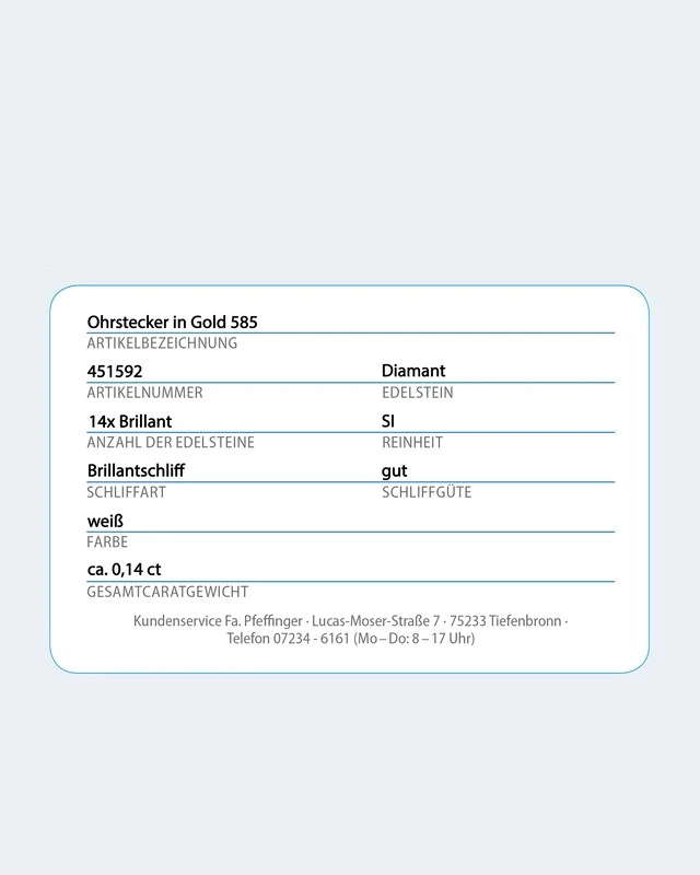 In dem mitgeliefertem Pfeffinger Zertifikat können Sie sich von der Güte der Brillanten überzeugen.