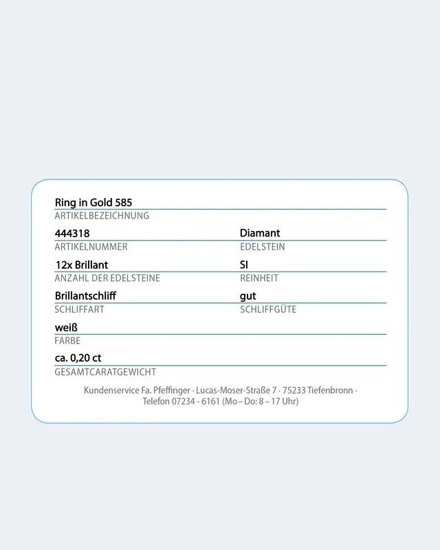 Dieser bildschöne Ring aus glänzendem 585er Gelbgold in feiner Mattierung lässt keine Wünsche offen. Das moderne Design präsentiert einen Ringkopf mit edler Einkerbung, in der 20 weiße Brillanten eingesetzt sind. Die Steine versprühen ein Glitzern, das einem den Atem stocken lässt. Unsagbar schön. Bei den Brillanten handelt es sich um Edelsteine mit der Reinheit SI. Das bedeutet, dass kleine Einschlüsse nur unter 10-facher Vergrößerung zu erkennen sind. Der hochwertige Schliff der Steine weist insgesamt 56 Facetten und die charakteristische Tafel auf.