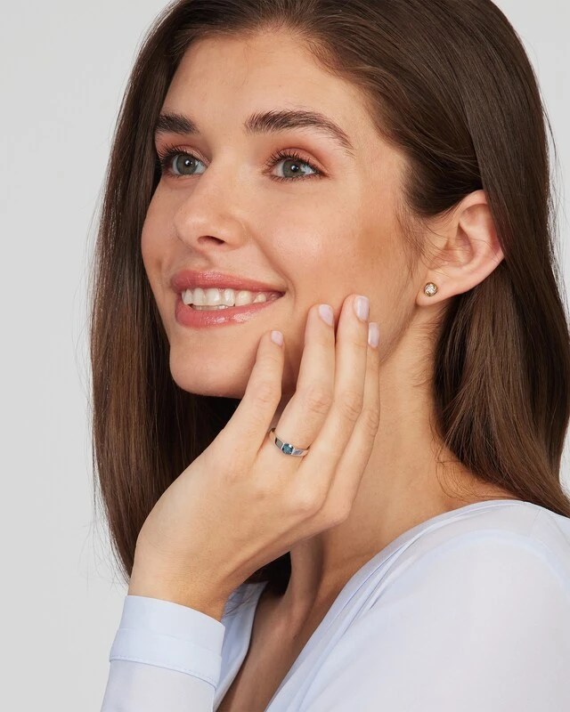 Sie lieben Diamanten und außerdem das Besondere? Dann ist das Ihr Ring! Der Ring ist im Spannring-Design gearbeitet, das den wundervollen, blauen Brillanten herrlich in Szene setzt.