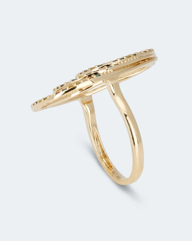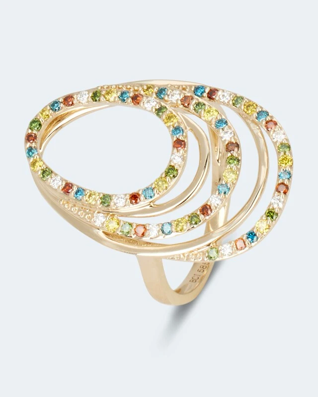 Entdecken Sie ein absolut wertvolles Schmuck-Highlight in verschwindend kleiner Auflage: Die 70 Brillanten in Weiß, Blau, Grün, Cognac und Gelb verteilen sich über den extravagant gestalteten Ringkopf aus mehreren Strängen in Ellipsenform, luftig und filigran zusammengefügt. Die Brillanten in sehr gutem Schliff haben die Reinheit P1. Wenn Sie moderne Brillantschmuck-Designs lieben, ist dieser kostbare Schmuckschatz ein unbedingtes Must-have.