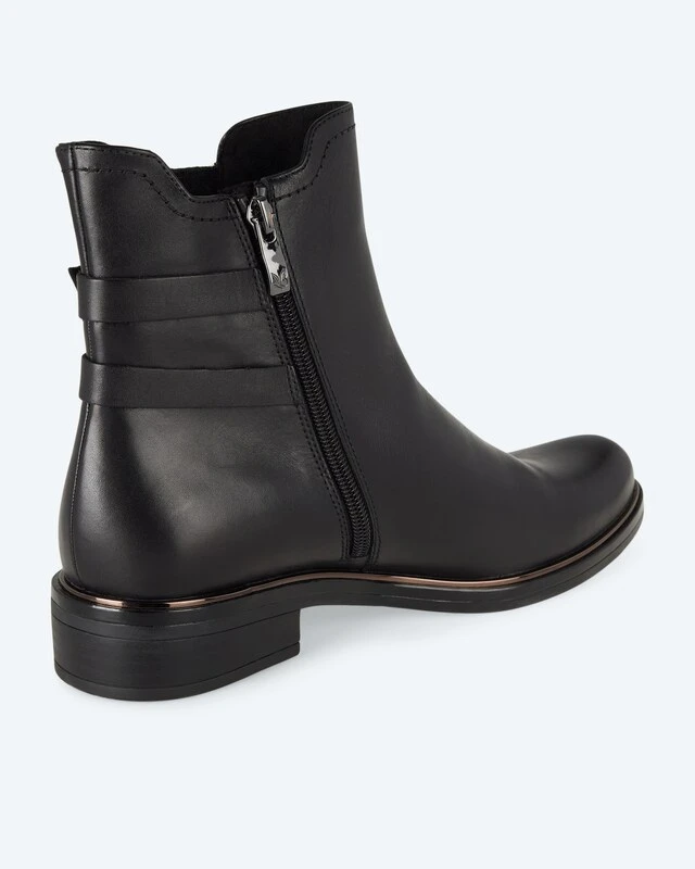 Der Boot aus schwarzem, feinem Nappaleder ist der perfekte Allrounder für Hosen, Röcke und Kleider. Besonderen Charme erhält er durch zwei Ledergürtel über dem Elastik, die den Schuh super bequem machen. Für den Laufkomfort sorgt die für Caprice typische OnAir-Laufsohle. Verschlossen wird der Boot, der mit einem Textilfutter ausgelegt ist, mit einem Innenreißverschluss. Fazit: Ein unglaublich vielseitiger und bequemer Begleiter, mit dem Sie Ihre Herbst-Outfits stilvoll abrunden.
