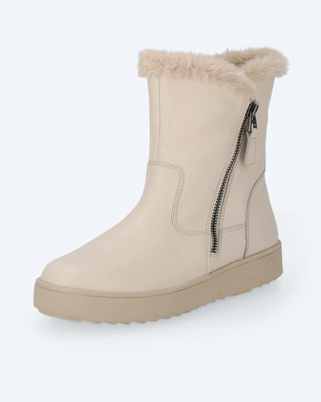 Mit dem runden Nappaleder-Stiefel von Caprice kommen Sie warm und top gestylt durch den Winter. Eyecatcher ist die schicke Fellumrandung. Der warm gefütterte Schuh mit Tex-Funktion hält Ihre Füße auch bei Nässe schön warm. Dank der OnAir Laufsohle genießen Sie einen tollen Laufkomfort. Die Innensohle können Sie leicht gegen eigene Einlagen austaschen. Praktisch und super chic sind die zwei Reißverschlüsse, die zudem einen schnellen Einstieg sichern. Ein warmer und kombistarker, schwarzer Stiefel-Allrounder, den Sie sich unbedingt sichern sollten.