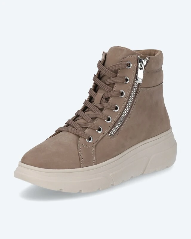 Erleben Sie den perfekten Mix aus Stil und Funktion mit diesem trendigen Sneaker von Caprice. Der hohe Schuh ist aus Leder gefertigt und trägt sich dank gepolstertem Schaftrand sehr angenehm. Die vorne abgerundete Plateausohle ist im angesagten Farbkontrast gearbeitet. Auch in Sachen Bequemlichkeit kann Ihr neuer Schuh überzeugen. Der weiche Memory-Schaumstoff im Memotion-Fußbett passt sich individuell an die Fußform an und sorgt damit für einen angenehmen Laufkomfort, auch auf langen Strecken. Den Sneaker müssen Sie haben.
