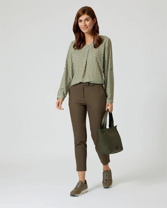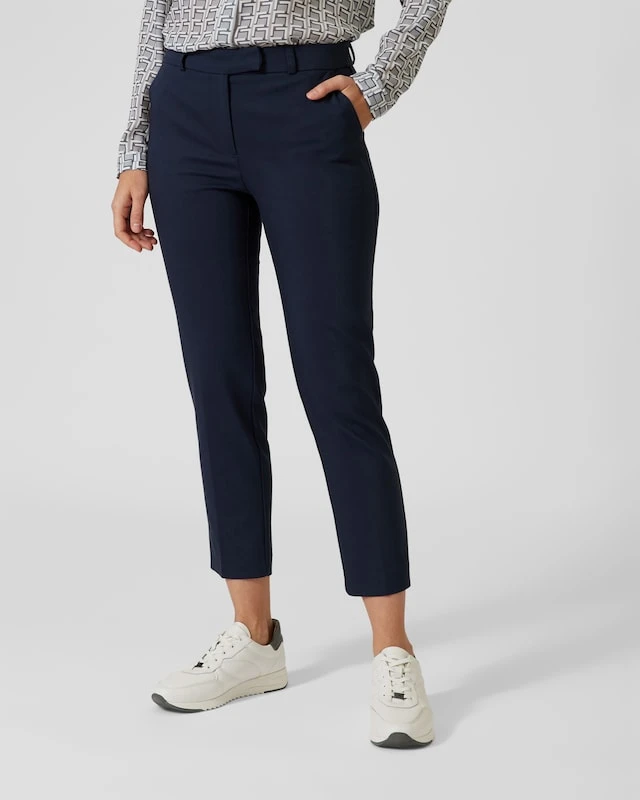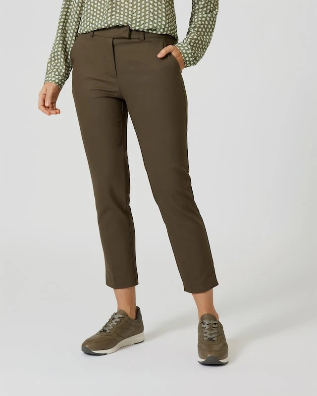 Die Chino ist vorne und hinten mit Bügelfalten gearbeitet. Das sieht toll aus und hat ganz nebenbei einen super streckenden Effekt: Ihre Beine wirken lang und schlank.