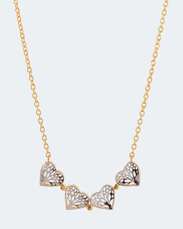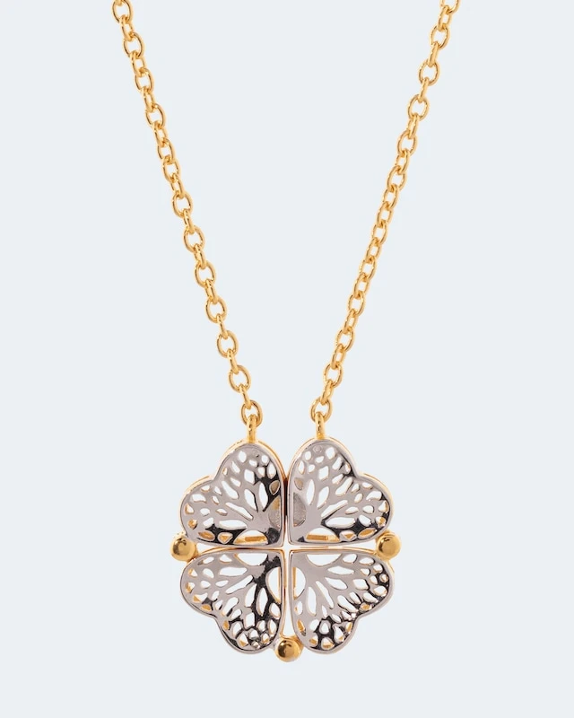 Wenn Sie ein Herzensgeschenk mit ideellem Wert suchen, ist das feine Collier goldrichtig. Denn für welche Tragevariante Sie sich auch entscheiden, es zeigt immer ein Motiv, das die Trägerin schmückt und ihr Glück bringen soll. Dabei ist es herrlich filigran gearbeitet und schimmert wahlweise in reinem Silber oder Silber und Gold. Dank der zwei Tragevarianten und der Verlängerung von ca. 3 cm können Sie außerdem etwas mit der Länge spielen. Dieses Collier ist ein vielseitiges und zartes Highlight für jede Garderobe!