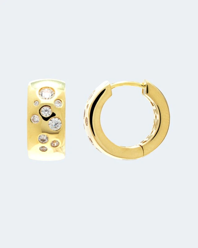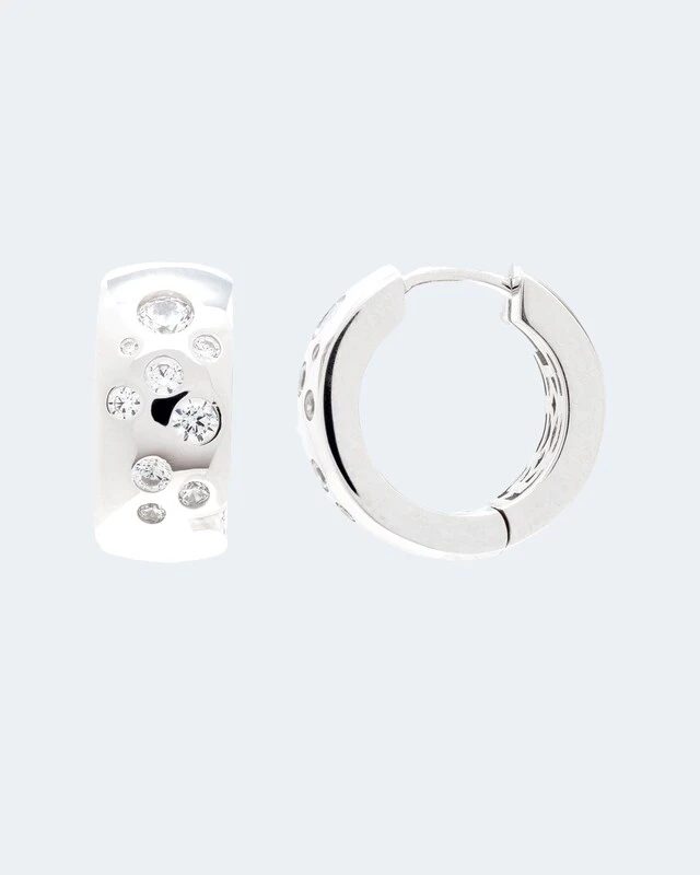 Die klassischen Klappcreolen sind mit je 9 Zirkonia in verschiedenen Größen ausgefasst – funkelnde Hingucker für Ihre Halspartie.