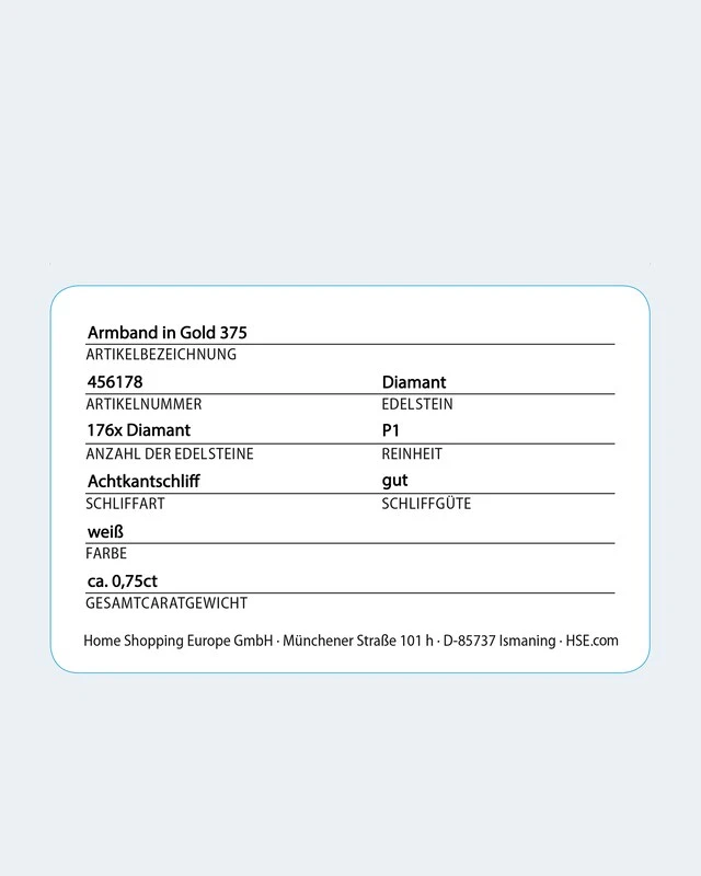 Natürlich ist das 375er Gold d für das herrliche Armband von ausgesuchter Qualität. Im Hinblick auf die Qualität unserer Schmuckwaren gehen wir keine Kompromisse ein. Aus diesem Grund wurde auch dieses Armband von unserer Qualitätssicherung und seitens des Lieferanten strengsten Prüfprozessen unterzogen. Unter anderem beinhalten unsere Prüfprozesse Prüfungen auf Konformität mit den Bestimmungen der Schweizer Edelmetallkontrollgesetzgebung.