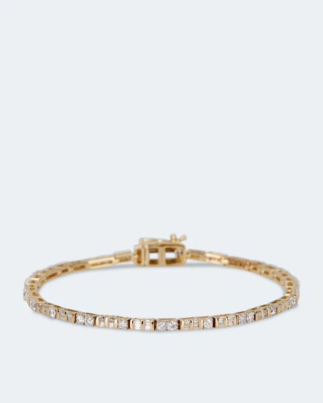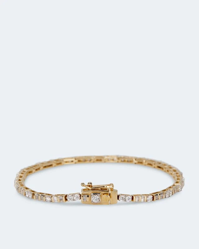 Ein atemberaubendes Accessoire erwartet Sie mit diesem Armband: Das zeitlose Design, das hochwertige Gold und der imposante Diamantbesatz mit sagenhaften 1,50 Karat – eine prunkvolle Kombination, die kaum noch zu toppen ist. Besetzt mit 82 Diamanten im Baguetteschliff und 33 Brillanten. Alle 115 Edelsteine sind klassisch weiß in der Reinheit P1 und von guter Schliffqualität. In feinstem Gelb- oder Weißgold.