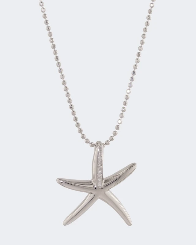 Das Zusammenspiel aus Silber und Diamanten wirkt jung und charmant. Der Seestern-Anhänger und die Kugelkette präsentieren sich hier im beliebten Weißgold-Look. Das rhodinierte Sterlingsilber wurde selbstverständlich auf Konformität mit den Bestimmungen der Schweizer Edelmetallkontrollgesetzgebung geprüft.