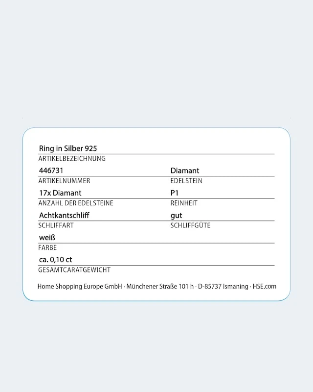 Der Ring ist aus 925er Sterlingsilber gefertigt. Die Oberfläche ist rhodiniert, wodurch das Schmuckstück einen herrlichen Weißgoldglanz erhält und gleichzeitig optimal vor Abrieb und Anlaufen geschützt ist.