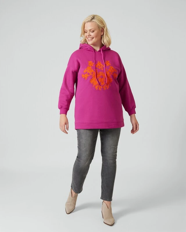 Mit seinen tollen Farben und dem lässigen Schnitt eignet sich dieser Hoodie perfekt für relaxte Casual-Styles. Neben der mittigen Stickerei bestimmen die Kapuze mit Kordelzug und die überschnittenen Schultern den Look. Ärmel und Saum sind jeweils mit komfortablen Bündchen versehen. Für vollendeten Tragekomfort wurde ein weicher Sweat aus reiner Baumwolle verarbeitet. In zwei Varianten zur Wahl.