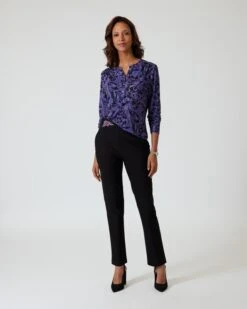 Diese Hose vereint Stil und Bequemlichkeit auf eine einzigartige Weise. Die bequeme Schlupfform ermöglicht einen mühelosen Einstieg und bietet den ganzen Tag über höchsten Tragekomfort. Der breite Bund mit Zierknopf sorgt für eine edle Note. Die florale Stickerei am Bund verzaubert mit ihrer detailverliebten Schönheit und verleiht der Hose einen besonderen Charme. Mit ihrem geraden Bein schmeichelt sie Ihrer Silhouette und lässt Sie stets gut aussehen – egal zu welchem Anlass. Freien Sie sich auf zeitlose Eleganz gepaart mit einem angenehmen Tragegefühl, das Sie begeistern wird.