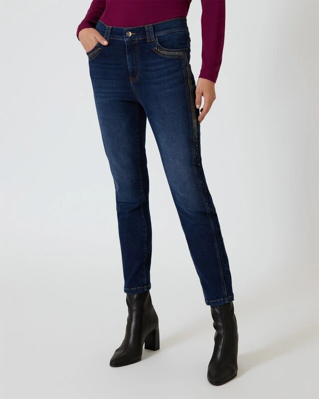 Sie lieben lässige Jeans insbesondere dann, wenn sie noch ein paar glamouröse Details mitbringen? Dann ist diese Hose aus der neuen Maloo Kollektion wie für Sie gemacht!