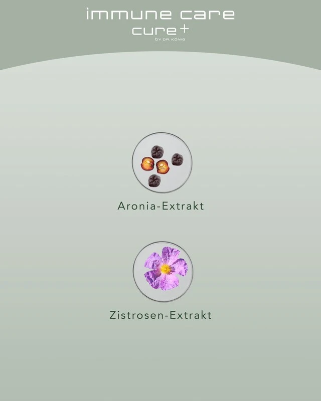 Das Produkt Immune Care einhält eine innovative Kombination aus Zistrosenkrautpulver und Zistrosen-Extrakt mit natürlichem Vitamin C aus der Aronia-Beere – sinnvoll kombiniert mit Zink.