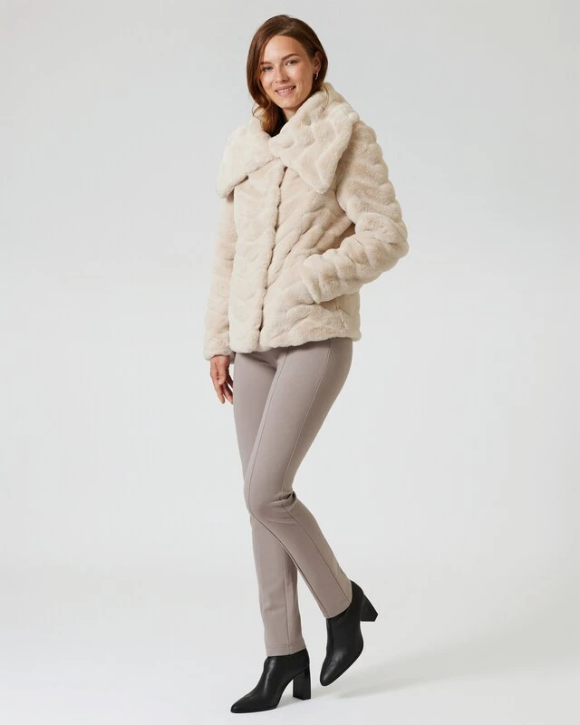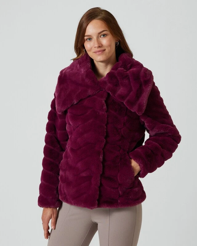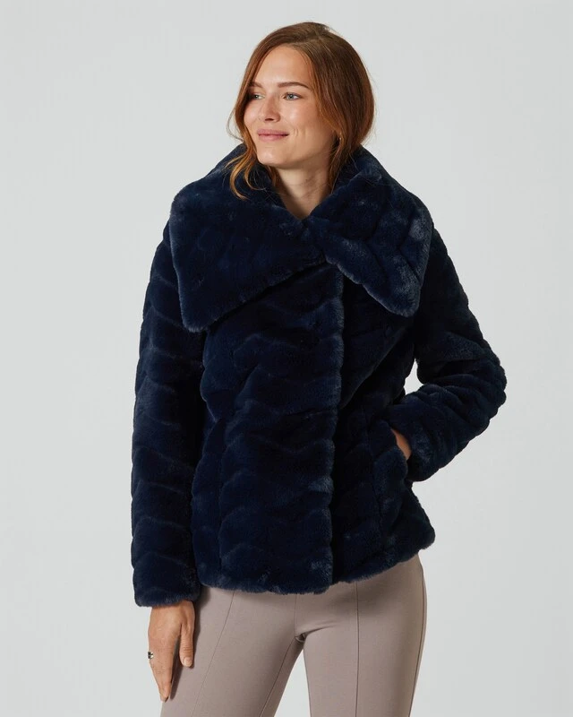 Diese Jacke ist wunderbar warm und kuschelig. Der Webpelz mit Zickzack-Muster ist von einem echten Pelz kaum zu unterscheiden. Das wirkt sehr hochwertig und modisch.