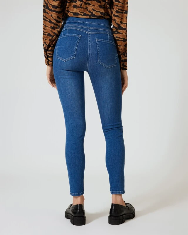 Die Jeggings sind im 4-Pocket-Stil designt. Die Taschen hinten formen einen knackigen Po. Vorne gibt es einen angedeuteten Reißverschluss, sodass die Jeans-Leggings die Optik einer echten Jeans bekommen.