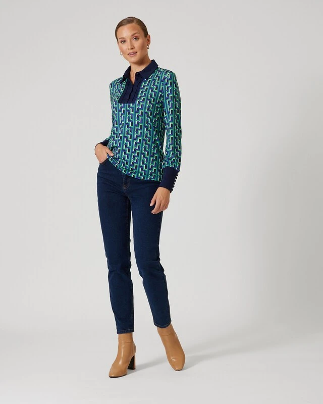 Ein Poloshirt mit langen Ärmeln? Aber natürlich, das funktioniert bestens – wie dieses Modell von Marcel Ostertag beweist. Erhältlich in zwei Designs: komplett unifarben in Dunkelgrün oder mit Grafikdruck sowie Uni-Kragen und -Ärmelenden. Jeweils mit kurzer, tonaler Knopfleiste unter dem Ausschnitt und am Armabschluss. Beide Varianten kleiden Sie zeitlos-elegant – perfekte Mode für jeden Tag.