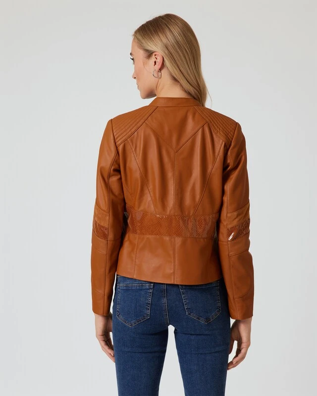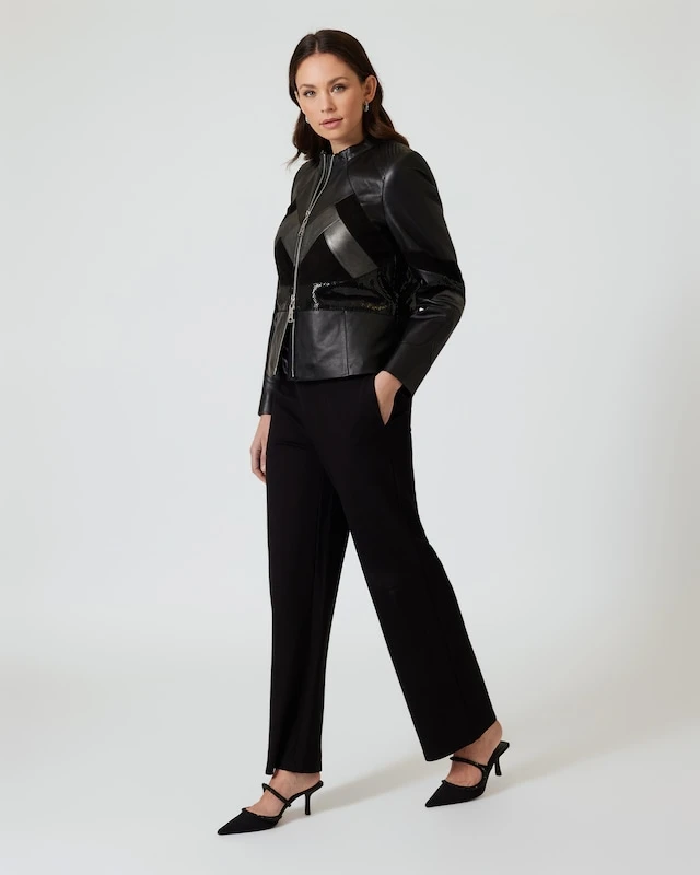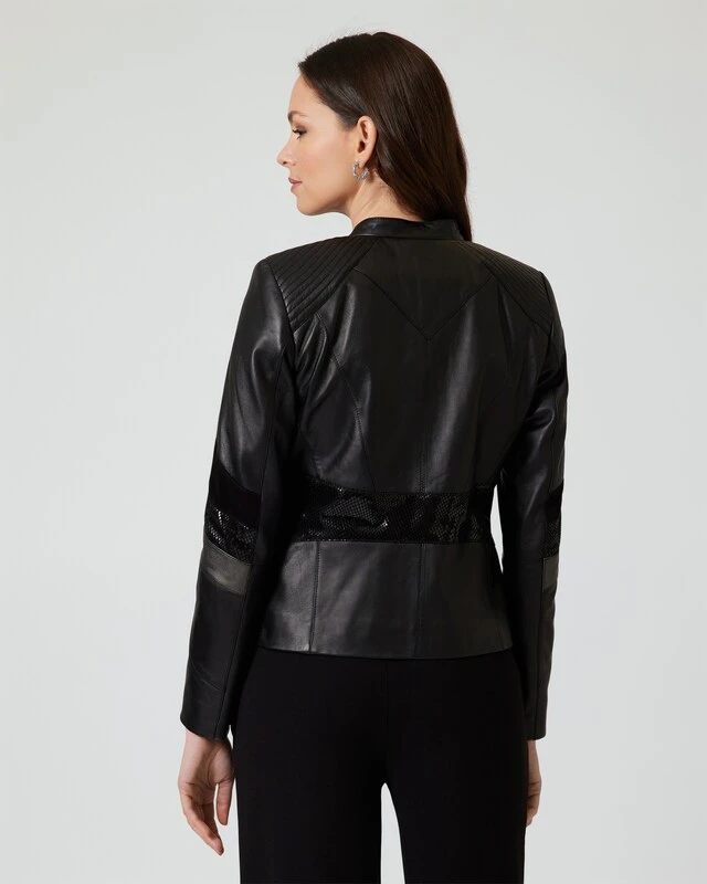 Dieser Lederliebling im modernen Patch-Design ist ein Must-have für Ihre Garderobe. Die leicht taillierte Jacke aus der aktuellen Brian Rennie Kollektion hat mit den abgesteppten Schultern eine rockige Ausstrahlung. Die 2-farbigen, glänzenden Einsätze in dynamischer Zickzack-Optik betonen gekonnt die Körpermitte. Ein clevere 2-Wege-Reißverschluss macht das markante Modedesign komplett.