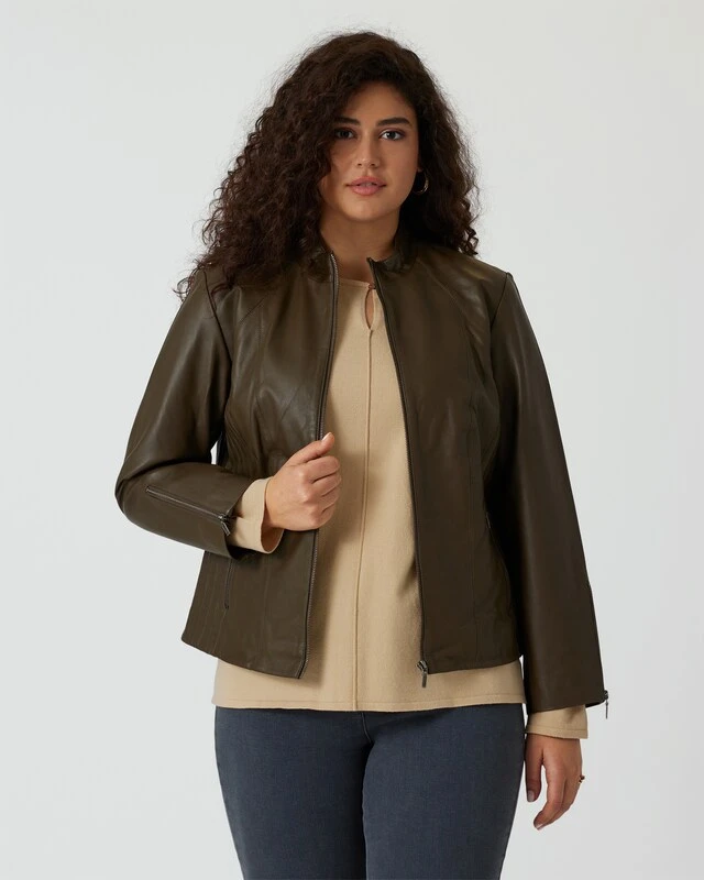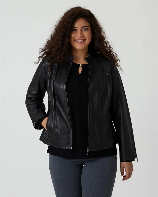 Manchmal muss es einfach Leder sein! Das hochwertige Material mit dem feinen Schimmer ist genau das Richtige, um weibliche Kurven gekonnt in Szene zu setzen. Das Design der Jacke besticht durch modische Stepp-Details an der Seite und stylische Reißverschlüsse, die dem Look die nötige Coolness verleihen!