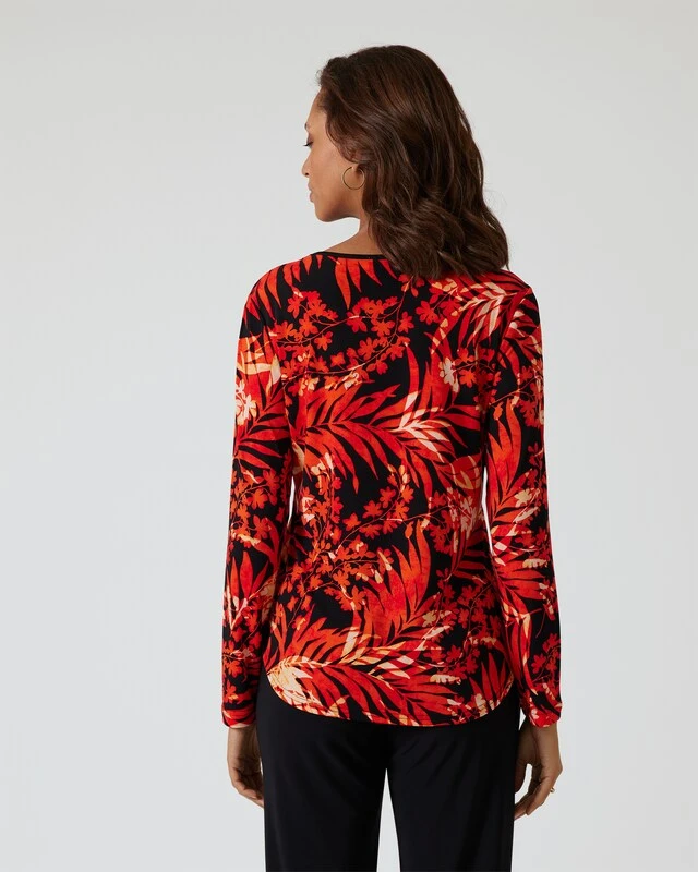 Dieses Shirt in etwas längerer Form ist sehr vielseitig tragbar und hat dank der schwarzen Blende im Vorderteil einen streckenden Effekt. Der Blätterprint in harmonischen Farben schmeichelt Ihrem Teint und wirkt toll zu Jeans. Der Rundhalsausschnitt ist ebenfalls in Schwarz eingefasst – so kommt der Druck noch akzentuierter zur Geltung.