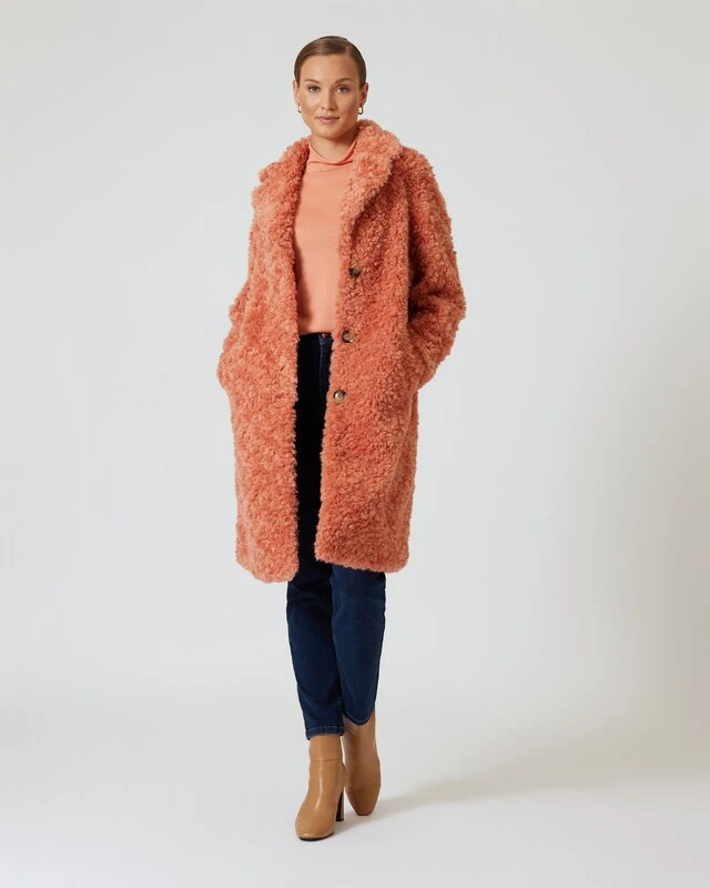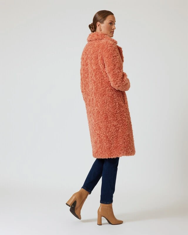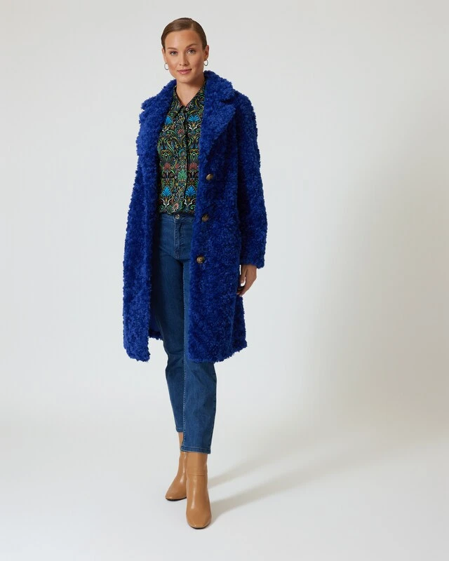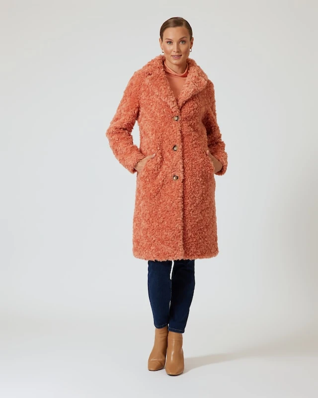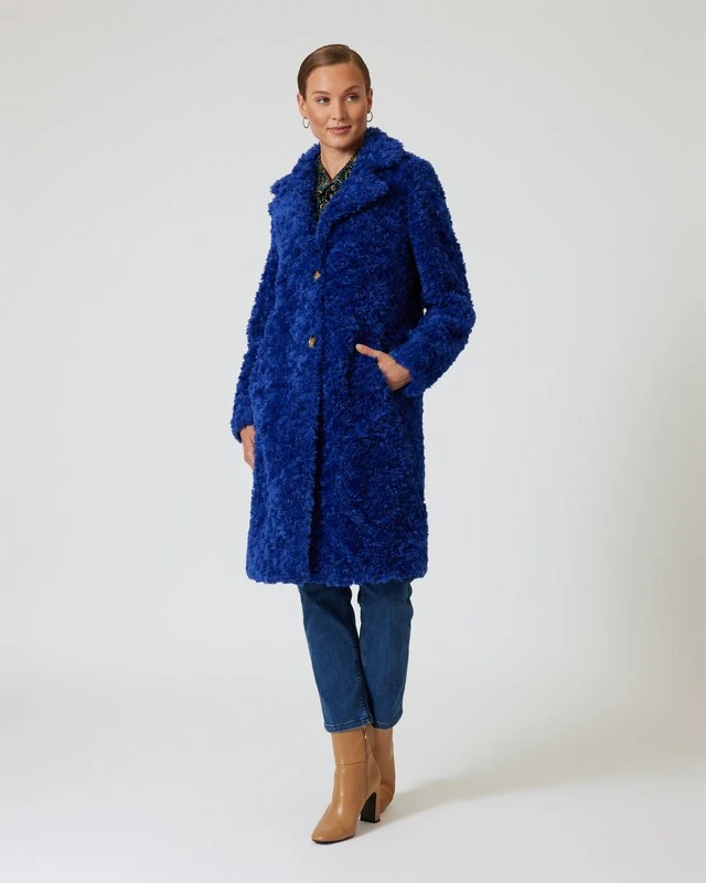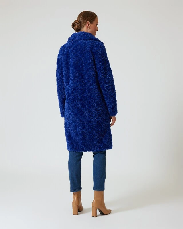 Dieser Mantel im klassischen Schnitt ist ein echtes Designer Highlight, das Sie modisch in Szene setzt. Der knielange Mantel ist mit einem Reverskragen und einer Knopfleiste ausgestattet und begeistert mit einer kuscheligen Pelz-Optik. Das sieht nicht nur toll aus, sondern wärmt auch perfekt. Der Mantel ist in den schicken Farben Saphirblau und Terracotta erhältlich – so stechen Sie aus dem Einheitsschwarz heraus und bekommen gute Laune in der dunklen Jahreszeit.