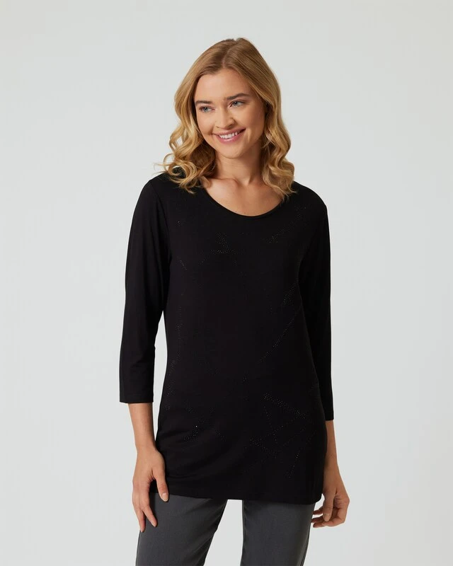 Hochwertige und vielseitige Basics bilden das Herzstück jeder stilvollen Damengarderobe. Das Midi-Shirt von Helena Vera zeigt sich in kombistarkem uni mit betont femininen Schnittmerkmalen: Ein weiter Rundhalsausschnitt, modische 3/4-Ärmel und eine leicht taillierte Schnittführung bringen die weibliche Silhouette besonders schön zur Geltung. Gefertigt aus feiner, leicht elastischer Viskose.