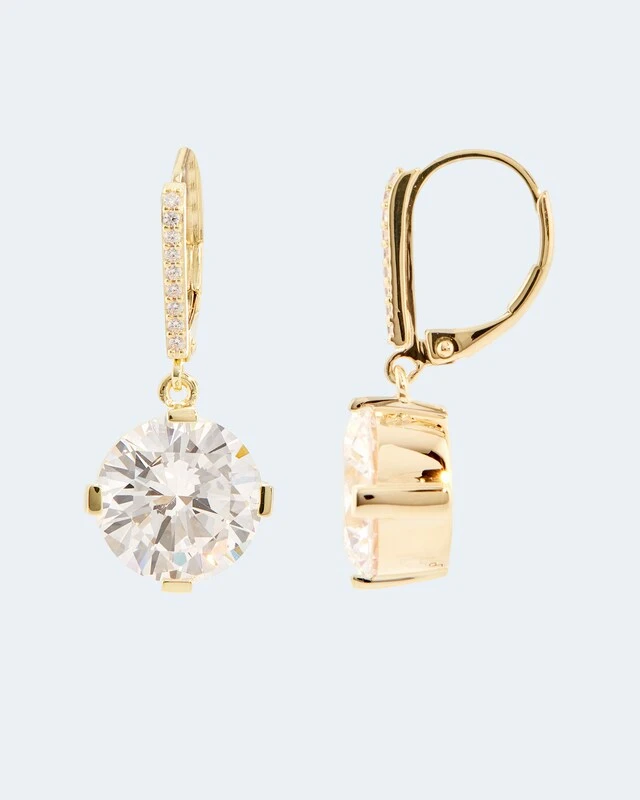 Diese Ohrhänger präsentieren glanzvolle Zirkonia im XXL-Format! Die beiden großen Steine messen 12 mm im Durchmesser. Ein echter Brillant dieser Größe käme auf unglaubliche 12,0 Karat!