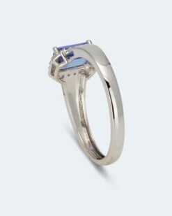 Der Tansanit ist zu einem formschönen Achteck verarbeitet und im Smaragdschliff veredelt. Er wird von 4 Krappen sicher im Ringkopf gehalten. Umrahmt wird der Prachtstein von 22 weißen Diamanten in P1-Reinheit. Und als Krönung wird dieses Ensemble in einem Rahmen aus glanzvollem Platin präsentiert. Ein Edelmetall, das wie kein anderes für Unvergänglichkeit steht.
