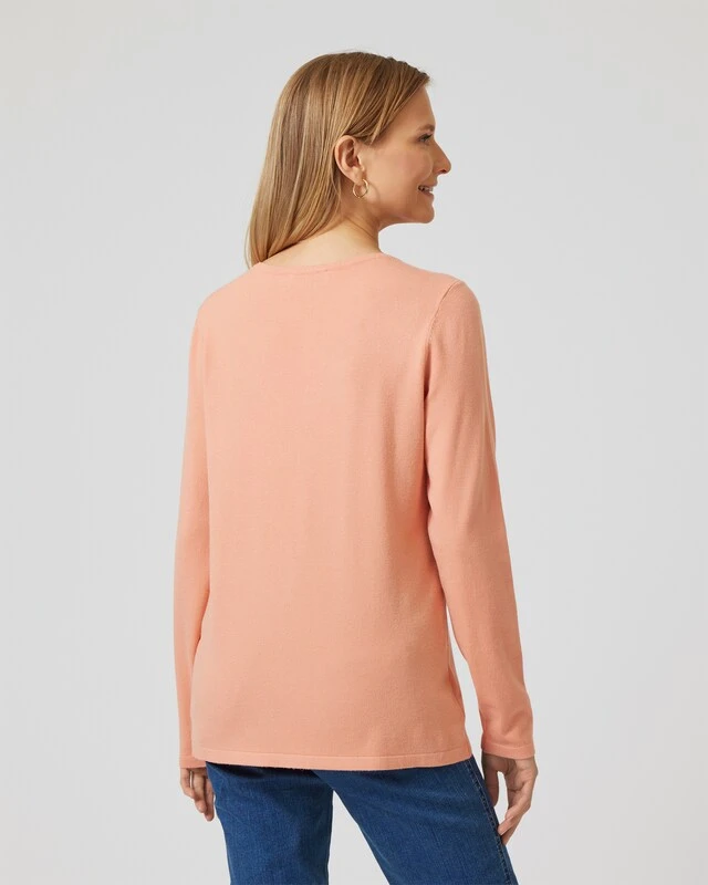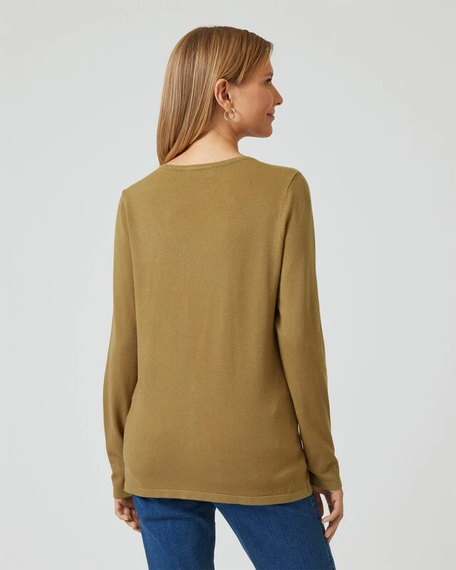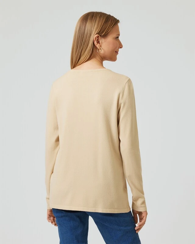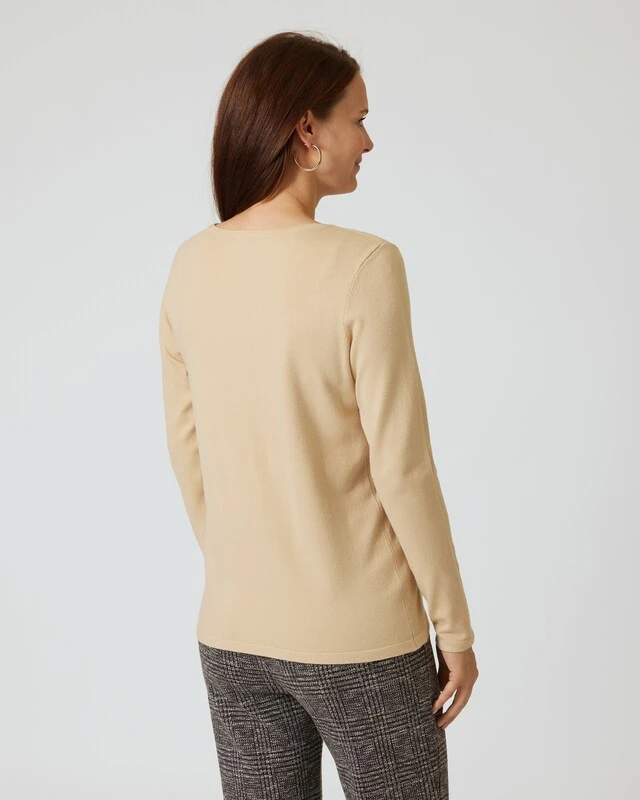 Die Besonderheit dieses Helena Vera Pullovers ist seine wunderschöne „Cashmere Feeling Deluxe“-Qualität mit Top-Tragekomfort. Der feine Strick enthält einen hohen Viskose-Anteil und zeigt eine elegante, matt schimmernde Textur. Neben dem tiefen Rundhalsausschnitt betont eine leichte Taillierung den femininen Appeal. Ein vielseitiger Kombipartner in verschiedenen hübschen Farben der Sasion.
