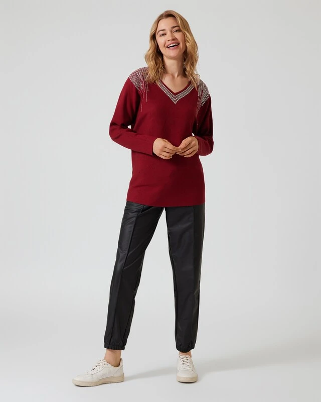 Freuen Sie sich auf einen ebenso hübschen wie bequemen Pullover mit bestem Kombi-Potenzial. Durch seine unifarbene Optik in sattem Rot geht er zwar als klassisches Basic-Teil durch, doch am stylischen Gesamtbild erkennt man das edle Maloo-Design.