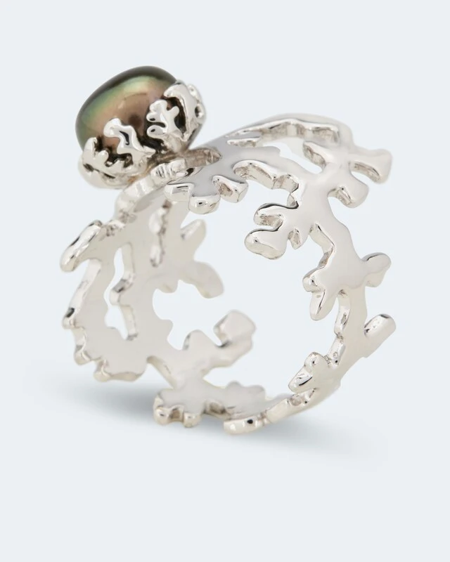 - aus Messing, silberweiß rhodiniert, mit grau-grüner Süßwasserzuchtperle oder