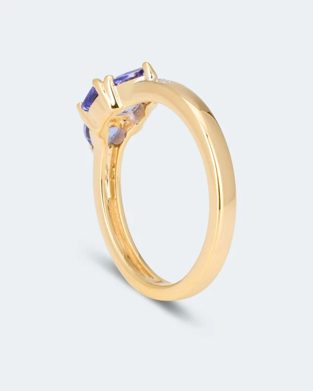 Bringen Sie mit diesem hinreißend schönen Ring alle Ihre Gesten zum Strahlen. Das Schmuckstück ist aus vergoldetem Silber gefertigt und sieht echtem Gold täuschend ähnlich. Als Eyecatcher dienen drei seltene, blaue Tansanite in feiner AAAA-Farbqualität. Ein Edelstein ist kissenförmig, die beiden anderen trilliantförmig facettiert. Die Krönung für dieses bezaubernde Schmuckdesign bilden je zwei weiße Zirkone rechts und links auf der Ringschiene. Unterstreichen Sie mit diesem Ring Ihren erlesenen Geschmack und freuen Sie sich auf Schmuck, der jeden Look stilsicher abrundet.