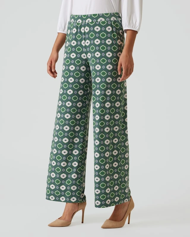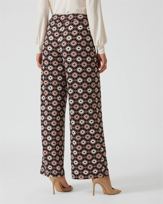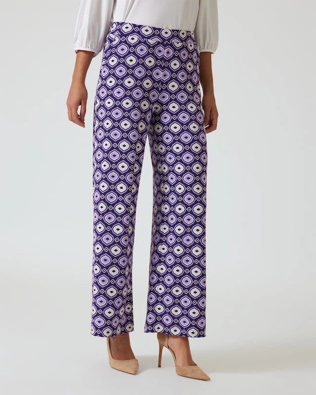 Die elegante Schlupfhose verbindet besten Tragekomfort mit einer glamourösen Optik. Unwiderstehlich ist das stylische Design mit einem grafischen Allover-Druck in extravaganter 70er-Jahre-Ästhetik.