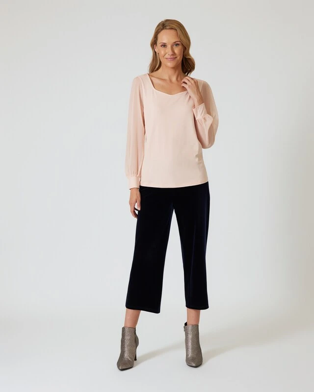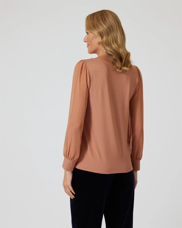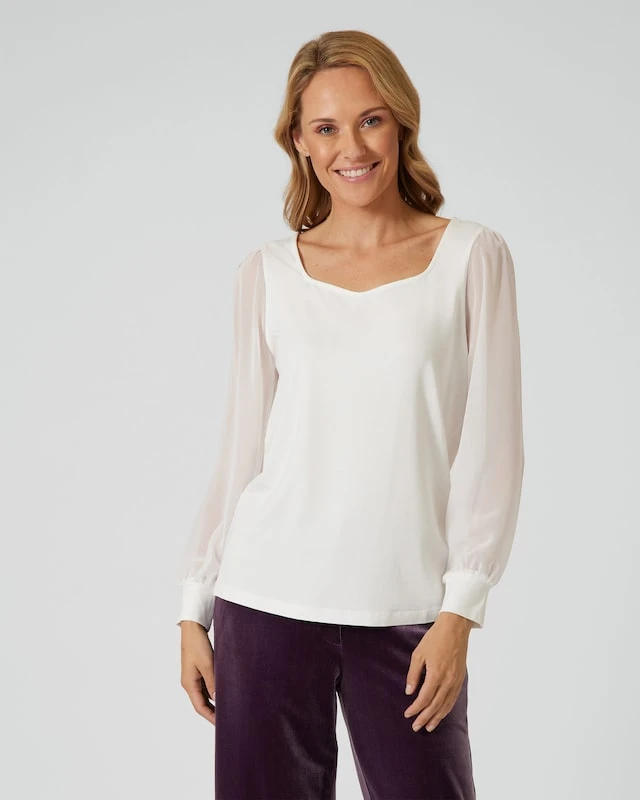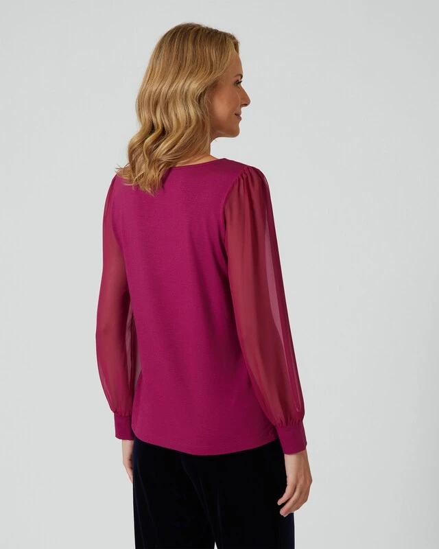 Ob elegant, modisch oder leger gestylt: Mit diesem wunderschönen Shirt von Lola Paltinger wird jedes Outfit zum Hingucker. Als besonderer Blickfang fallen natürlich die zarten Chiffon-Ärmel ins Auge, aber auch der herzförmige Ausschnitt bestimmt den betont femininen Charme. Nicht zuletzt lässt sich das klassische uni-Design toll kombinieren. Aus feinem, leicht elastischem Viskose-Jersey.