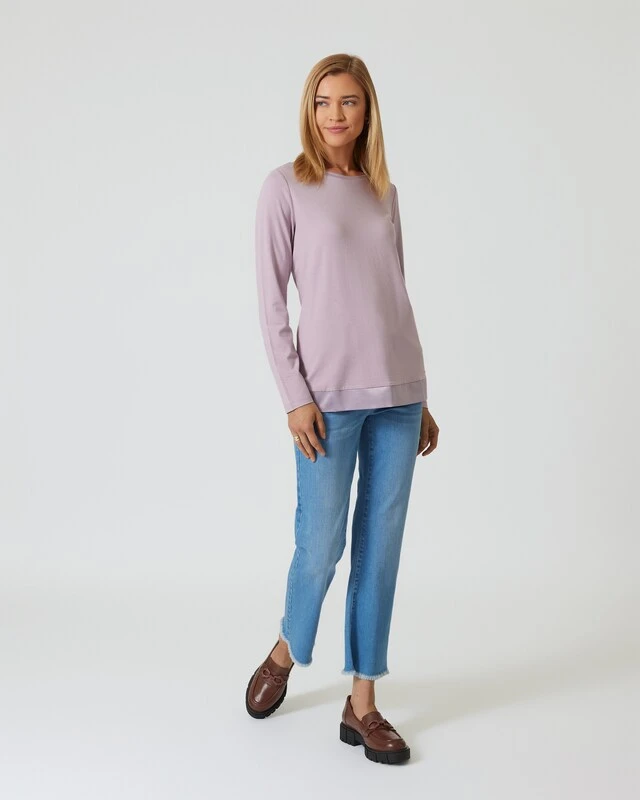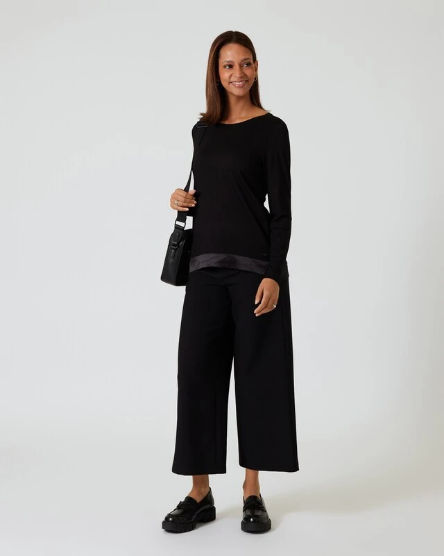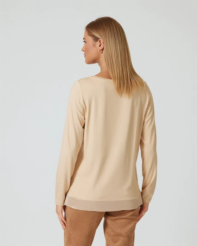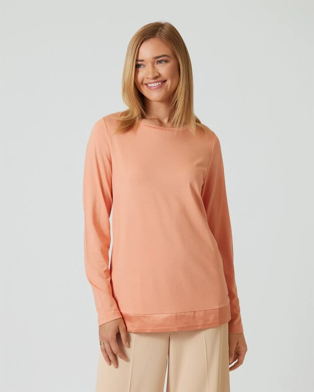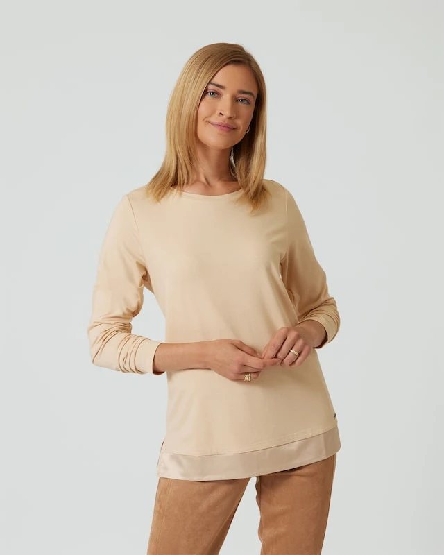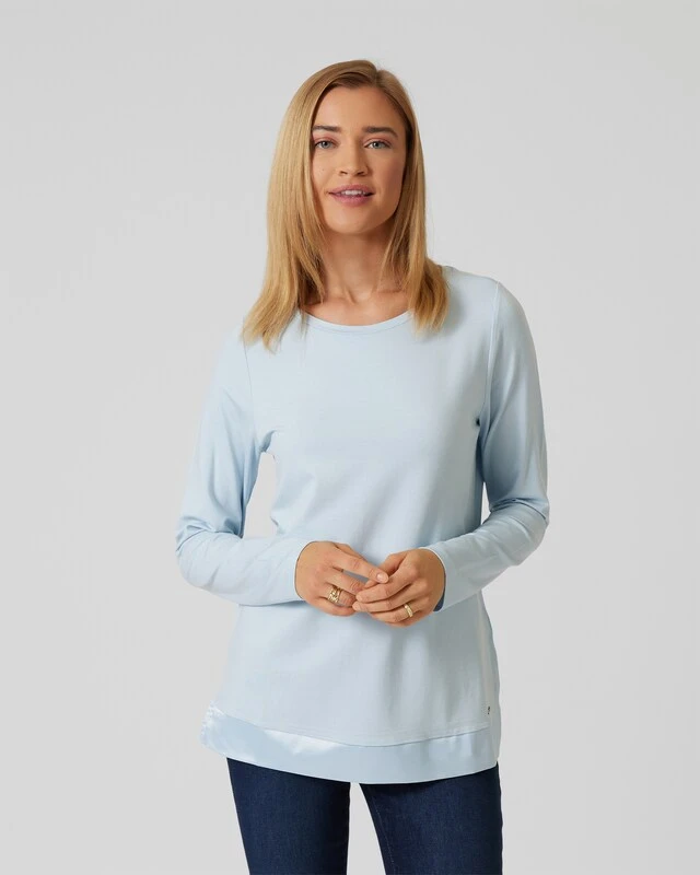Dieser wunderschöne Pullover vereint Stil, Eleganz und Vielseitigkeit: Das unifarbene Design eignet sich perfekt als Ergänzung charmanter Outfits. Der zeitlose Rundhalsausschnitt sorgt für eine klassische Optik, während der Satineinsatz am Saum eine Prise Extravaganz schenkt. Ob zu Jeans oder Leggings, zum feinen Business-Look oder zur Abendgarderobe. Dieser Pullover wird garantiert zum neuen Lieblingsstück in Ihrer Garderobe.