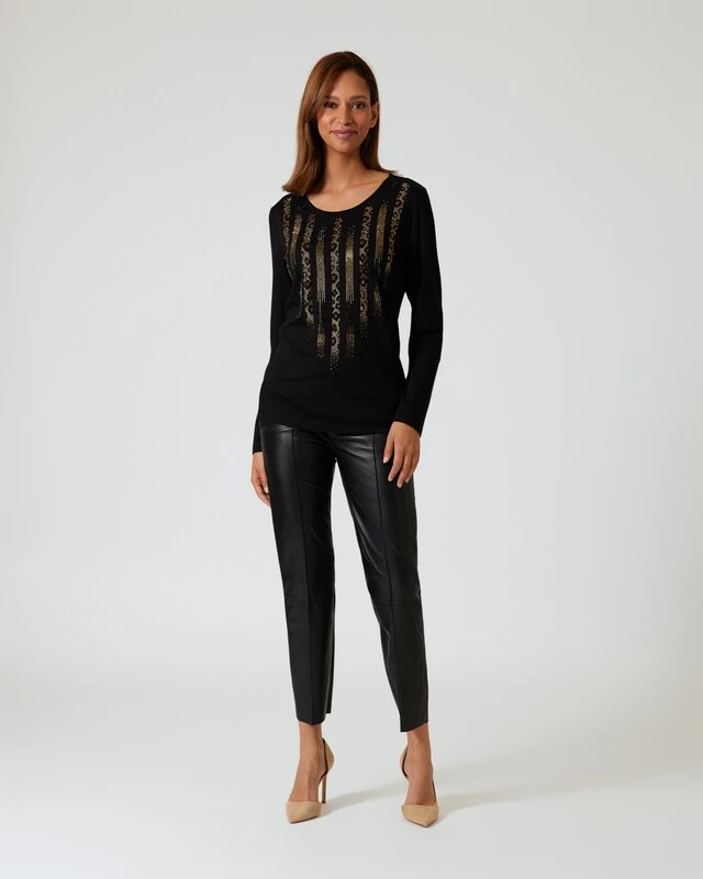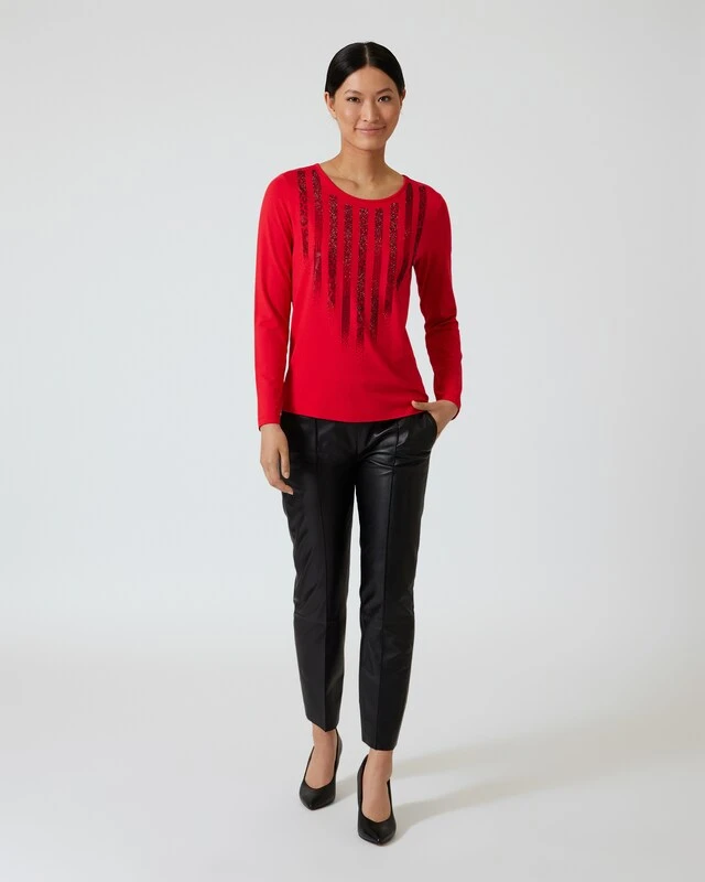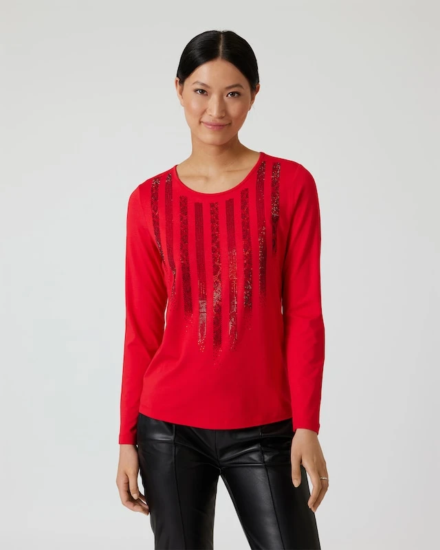 Kombitaugliche Shirts mit ein paar stylischen Raffinessen sind unverzichtbar, das finden Sie doch auch? Der besondere Hingucker bei diesem Exemplar ist das raffinierte Steinchendekor im Tiger-Look auf der Front. Ansonsten ist das Shirt unifarben gestaltet und in zwei zeitlos gültigen Farben zu bestellen. Sehr anmutig wirkt die feminine und körpernahe Schnittform, figurbetonend in schlanker Silhouette.