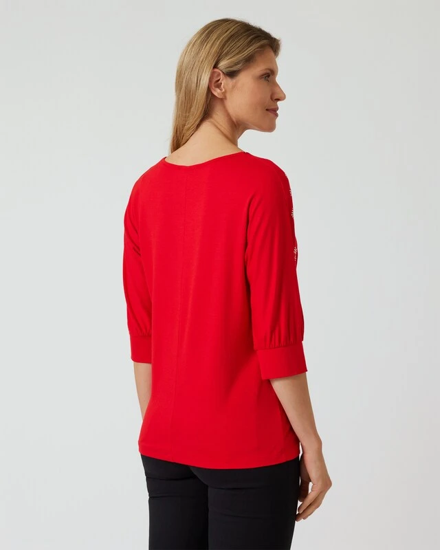 Ein bisschen Glitzer geht immer. Dieses Shirt begeistert im oberen Teil und an den Halbärmeln mit einem Leomuster aus Strass. Der V-Ausschnitt mit Reißverschluss bis zum Nabel wirkt ganz schön verführerisch. Und die Halbärmel mit breitem Saum sind bequem und das ganze Jahr tragbar. Dazu die elastische Viskose, die sich anfühlt wie ein Kuss auf der Haut und fertig ist ein Shirt, das Sie zu allem tragen können.