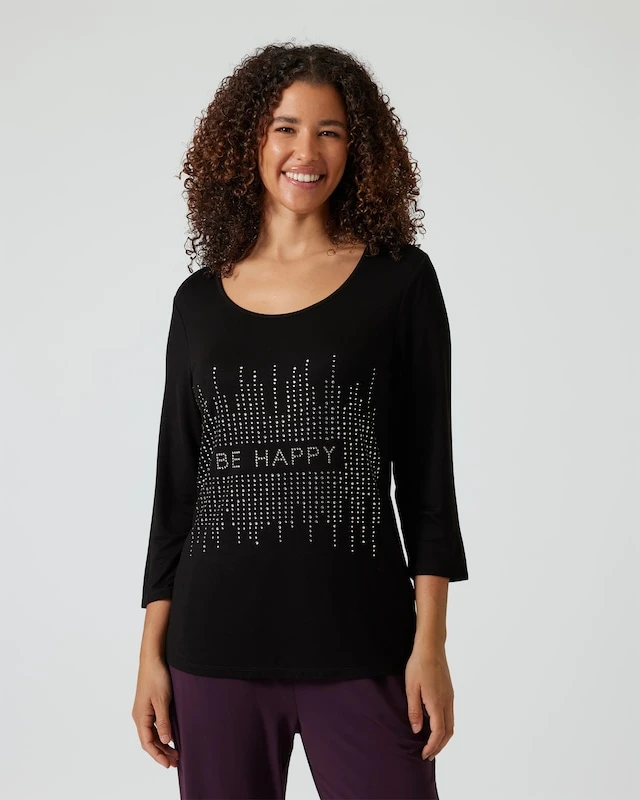 „Be Happy“ – so lautet die schlichte aber durch und durch weise Message auf diesem schicken Shirt von Lavelle. So sollten wie es alle halten, denn mit guter Laune im Herzen können uns weder schlechtes Wetter noch missmutige Mitmenschen runterziehen.