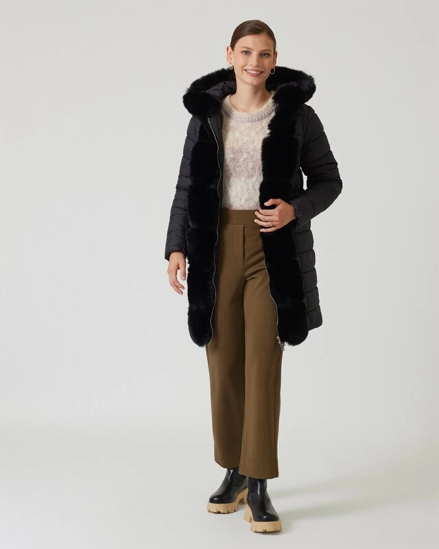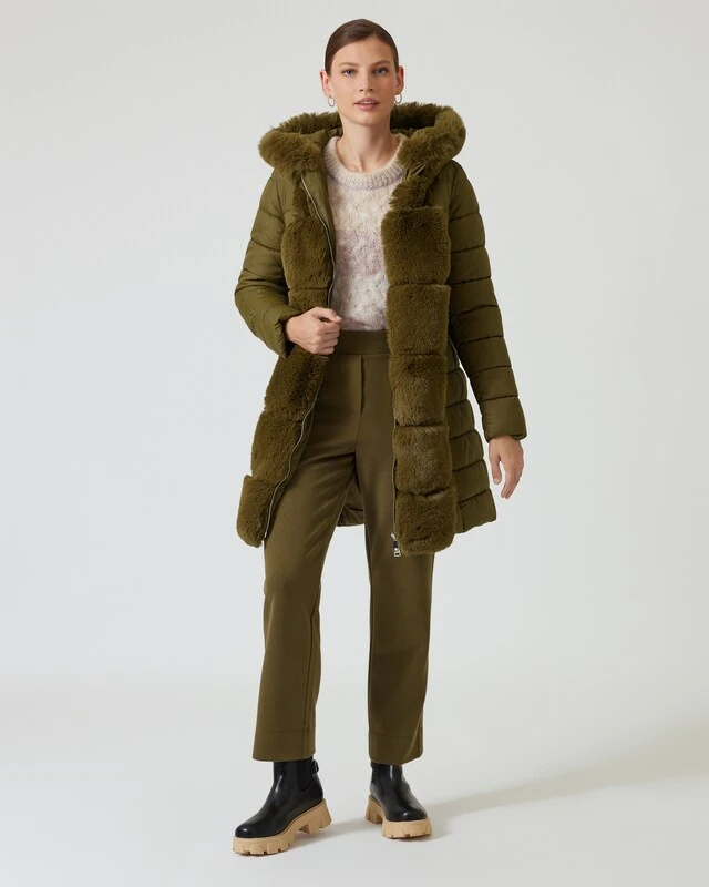 Nicht nur warm, sondern auch überaus schick: Der Steppmantel von BE GOLD kombiniert ein quergestepptes Design mit kuschlig weichem Faux-Fur an der Kapuze und entlang des Reißverschlusses. Der farblich passende Webpelz lockert das sportive Steppdesign auf und hat zudem eine streckende Wirkung. Wenn Sie einen warmen Begleiter mit besonderem Flair suchen, ist dies Ihr Goldstück. In Dunkeloliv oder klassischem Schwarz erhältlich.