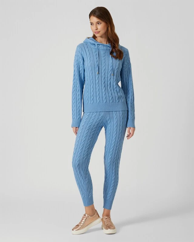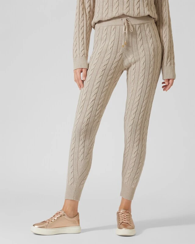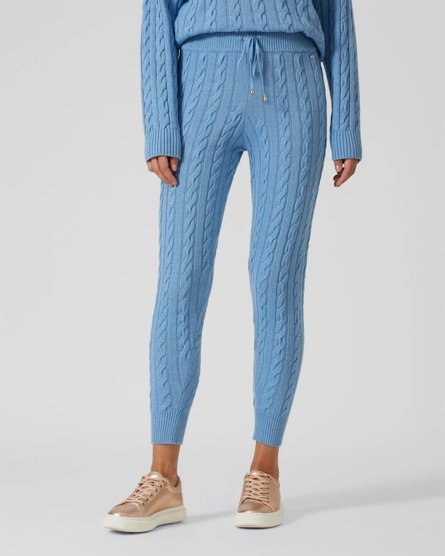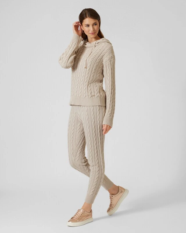 Ob zum Chillen oder Shoppen, ob für den Spaziergang oder für zu Hause – mit dieser Hose machen Sie immer eine gute Figur. Das Design ist unifarben mit einem All-over-Zopfstrickmuster, das vertikal verläuft und damit optisch streckend wirkt.