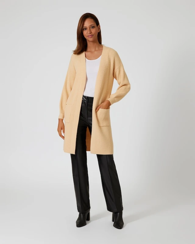 Suchen Sie noch einen Allrounder, der jedes Outfit gekonnt abrundet? Dann kommt hier die perfekte Lösung: Der Cardigan in offener Form ist körpernah geschnitten und schmiegt sich streichelzart an Ihre Figur. Große, aufgesetzte Seitentaschen und weite Ärmel mit schmalen Bündchen unterstreichen den lässig-femininen Look. Das Uni-Design in vier trendigen Wahlfarben lädt zu vielen eleganten Kombinationen ein.