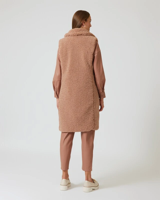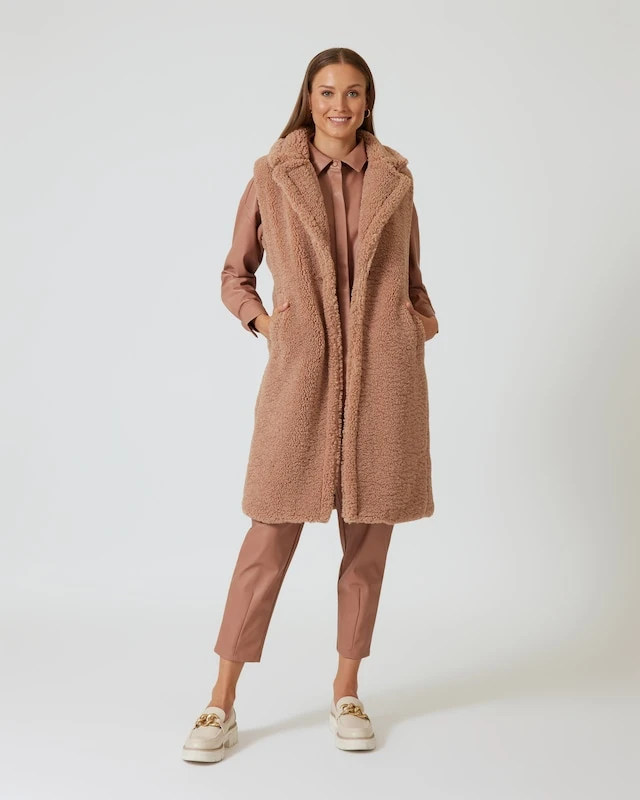 Ein Fashion-Piece für die kalten Tage des Jahres: Tauchen Sie ein in den Genuss von Wärme und Stil mit unserer Teddy Longweste. Die Weste ist nicht nur kuschelig weich, sondern ein angesagter Eye-Catcher, der jedes Outfit raffiniert ergänzt. Der weiche Teddy-Stoff verleiht Ihnen einen gemütlichen Look und hält Sie dabei angenehm warm. Das Twillfutter sorgt für zusätzliche Behaglichkeit und wunderbares Tragegefühl. Der große Reverskragen und der Ein-Knopf-Verschluss unterstreichen die mondäne Note der Weste. Egal ob über einem Pullover oder einer Bluse getragen – diese Longweste wird zum absoluten Hingucker Ihres Stylings.