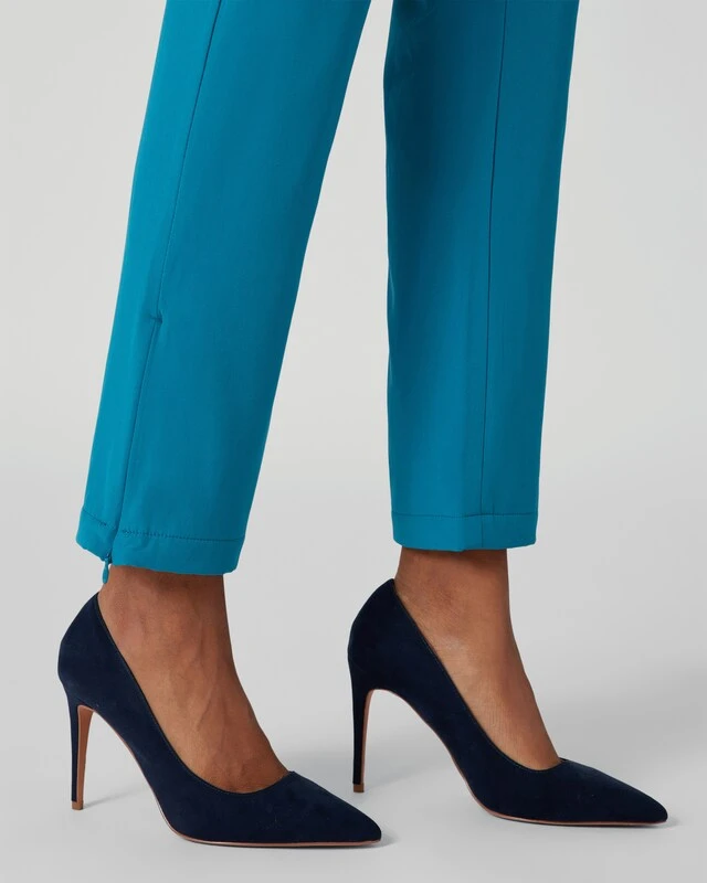 Mit Reißverschlüssen am Bein macht die jede Bewegung mit