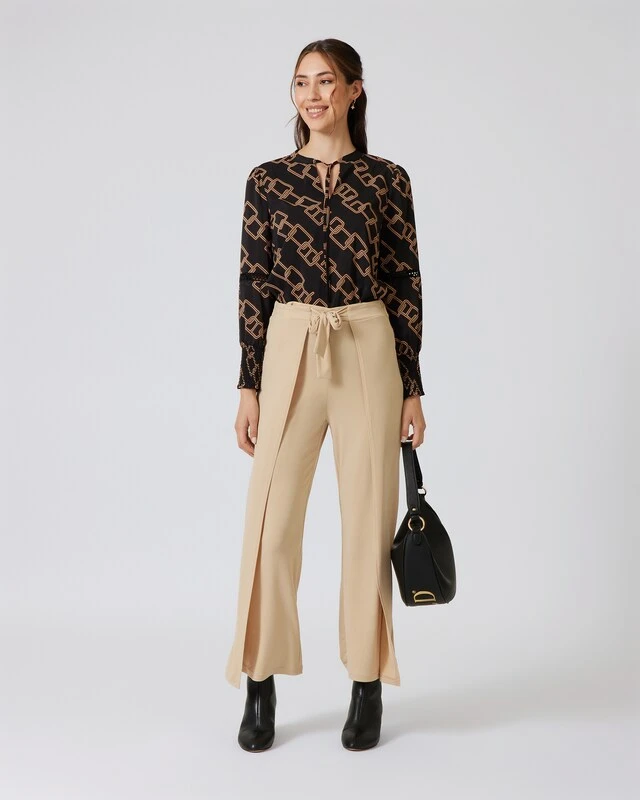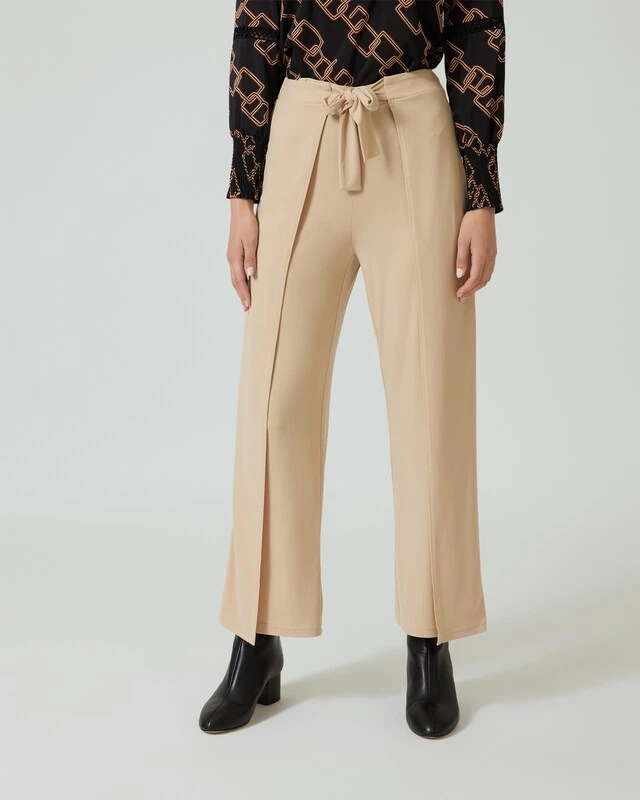Die attraktive Wickel-Optik gibt der Hose ihre charismatische Ausstrahlung. Der breite Bund auf Nabelhöhe ist hinten elastisch und vorne mit einem Band zum Binden versehen. Die attraktive Kombi sorgt dafür, dass die Hose wunderbar sitzt.